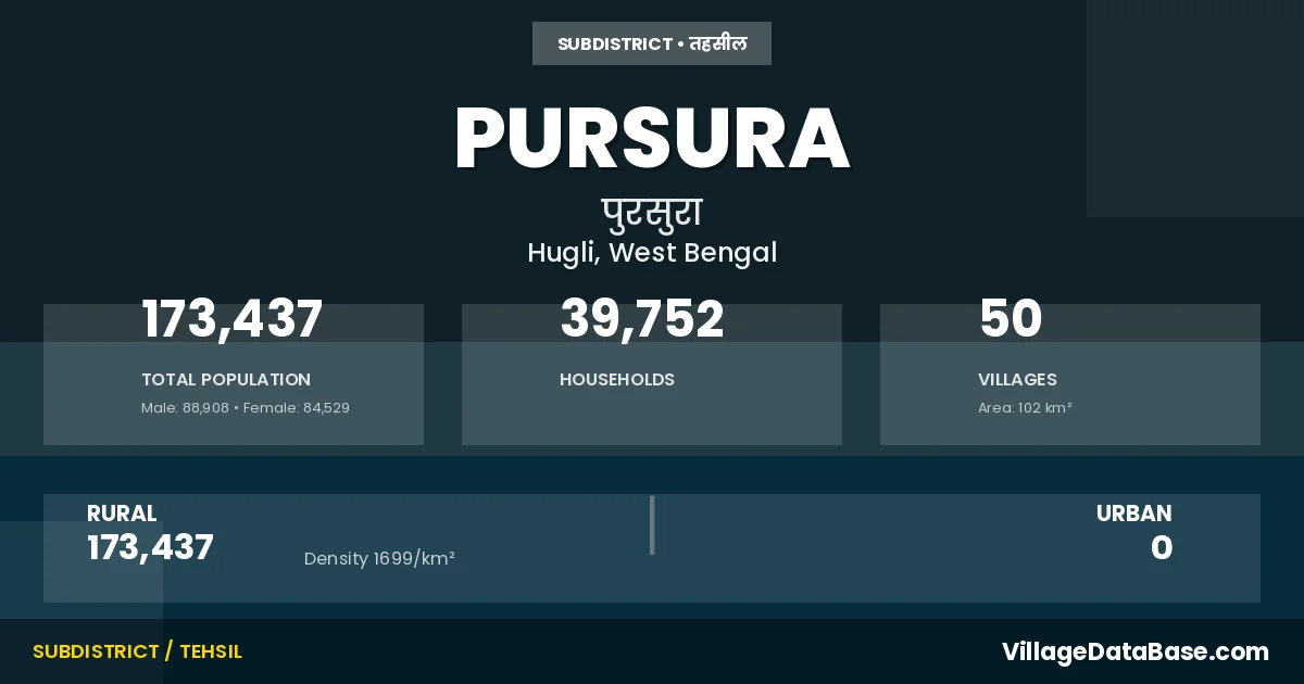 Pursura Subdivision comprises about 50 villages. Below is a list of these villages along with information about their respective gram panchayats and the nearest town: