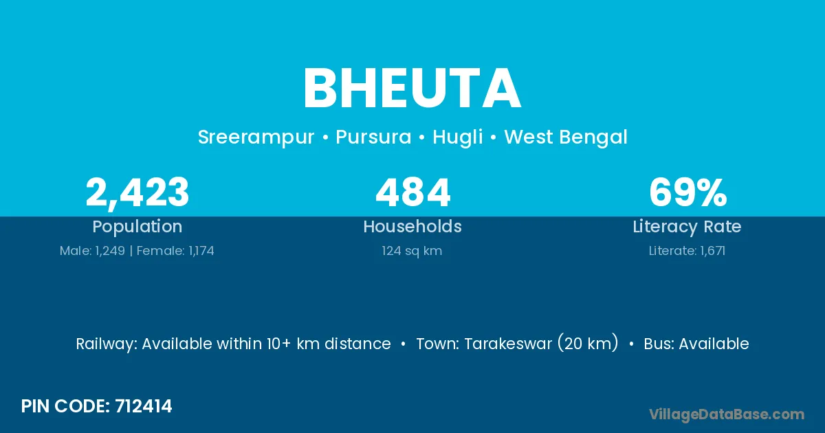 Tarakeswar (20 km) is the nearest town to Bheuta village for major economic activities and is located approximately 20 km away.