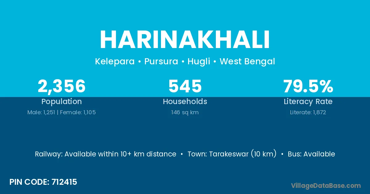 Tarakeswar (10 km) is the nearest town to Harinakhali village for major economic activities and is located approximately 10 km away.