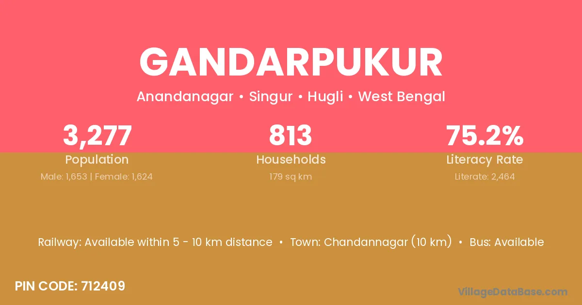 Chandannagar (10 km) is the nearest town to Gandarpukur village for major economic activities and is located approximately 10 km away.