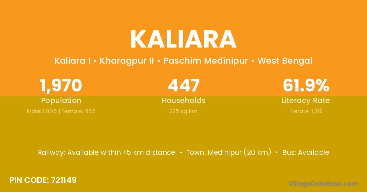 Chandan Nagar (12 km) is the nearest town to Kaliara village for major economic activities and is located approximately 12 km away.