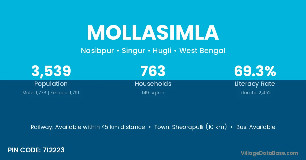 According to Census 2011 information, the village code of Mollasimla village is 712223.