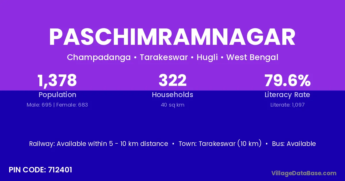 Tarakeswar (10 km) is the nearest town to Paschimramnagar village for major economic activities and is located approximately 10 km away.