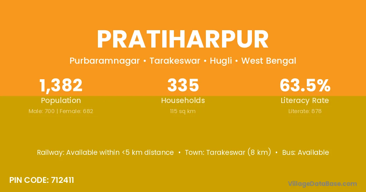 Tarakeswar (8 km) is the nearest town to Pratiharpur village for major economic activities and is located approximately 8 km away.