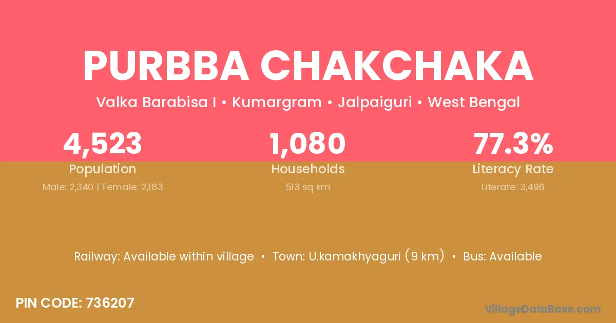 According to Census 2011 information, the village code of Purbba Chakchaka village is 736207.