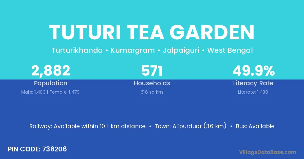 According to Census 2011 information, the village code of Tuturi Tea Garden village is 736206.