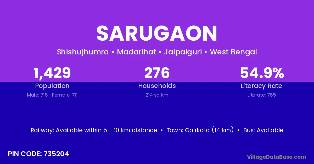 Gairkata (14 km) is the nearest town to Sarugaon village for major economic activities and is located approximately 14 km away.