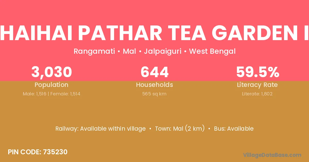 Haihai Pathar Tea Garden I village has a total population of 3,030 people, of which 1,516 are males and 1,514 are females.