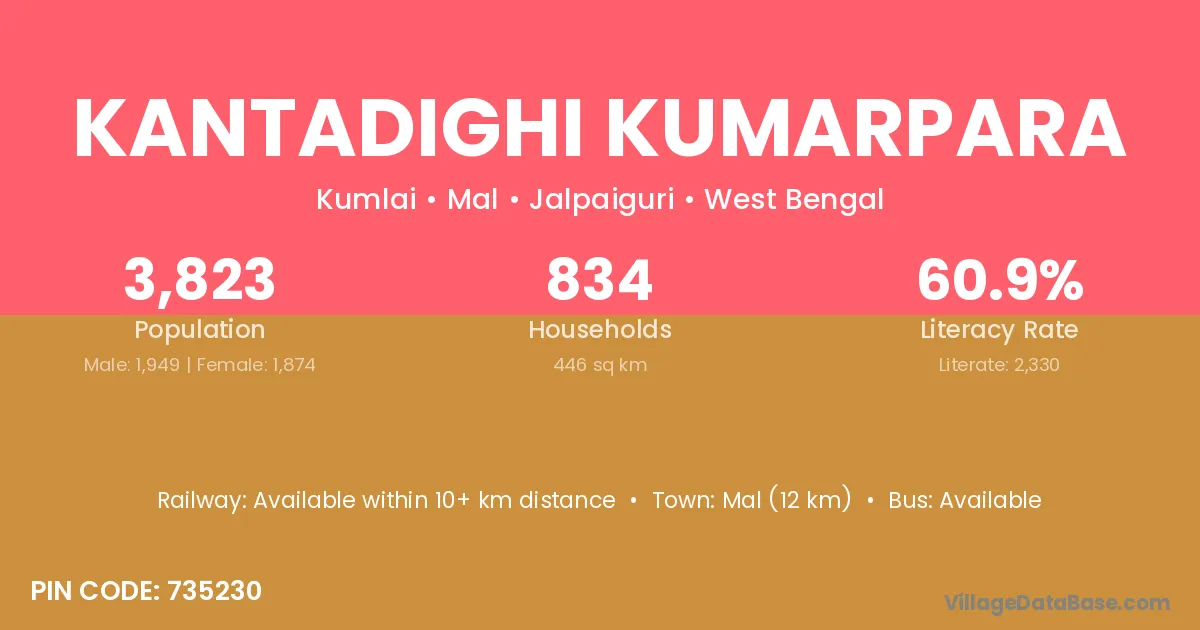 Mal (12 km) is the nearest town to Kantadighi Kumarpara village for major economic activities and is located approximately 12 km away.