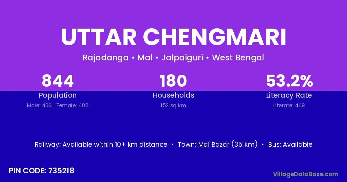 Mal Bazar (35 km) is the nearest town to Uttar Chengmari village for major economic activities and is located approximately 35 km away.