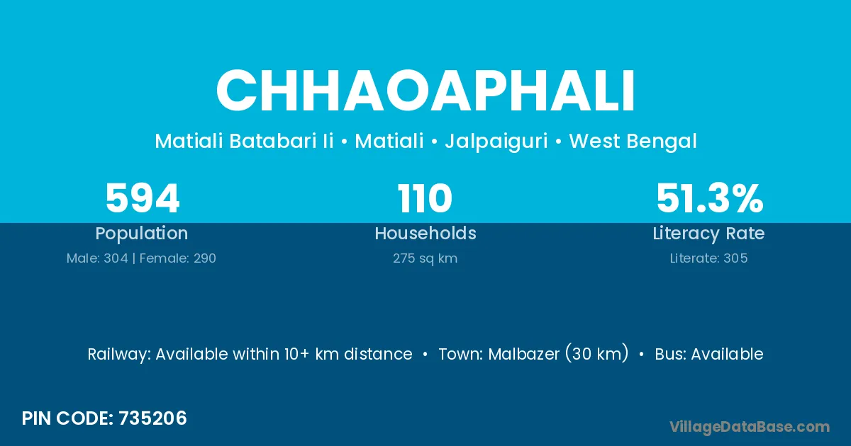 Chhaoaphali village has a total population of 594 people, of which 304 are males and 290 are females.