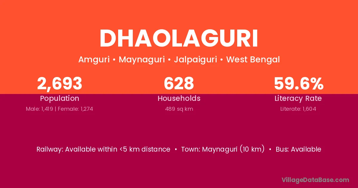 Maynaguri (10 km) is the nearest town to Dhaolaguri village for major economic activities and is located approximately 10 km away.