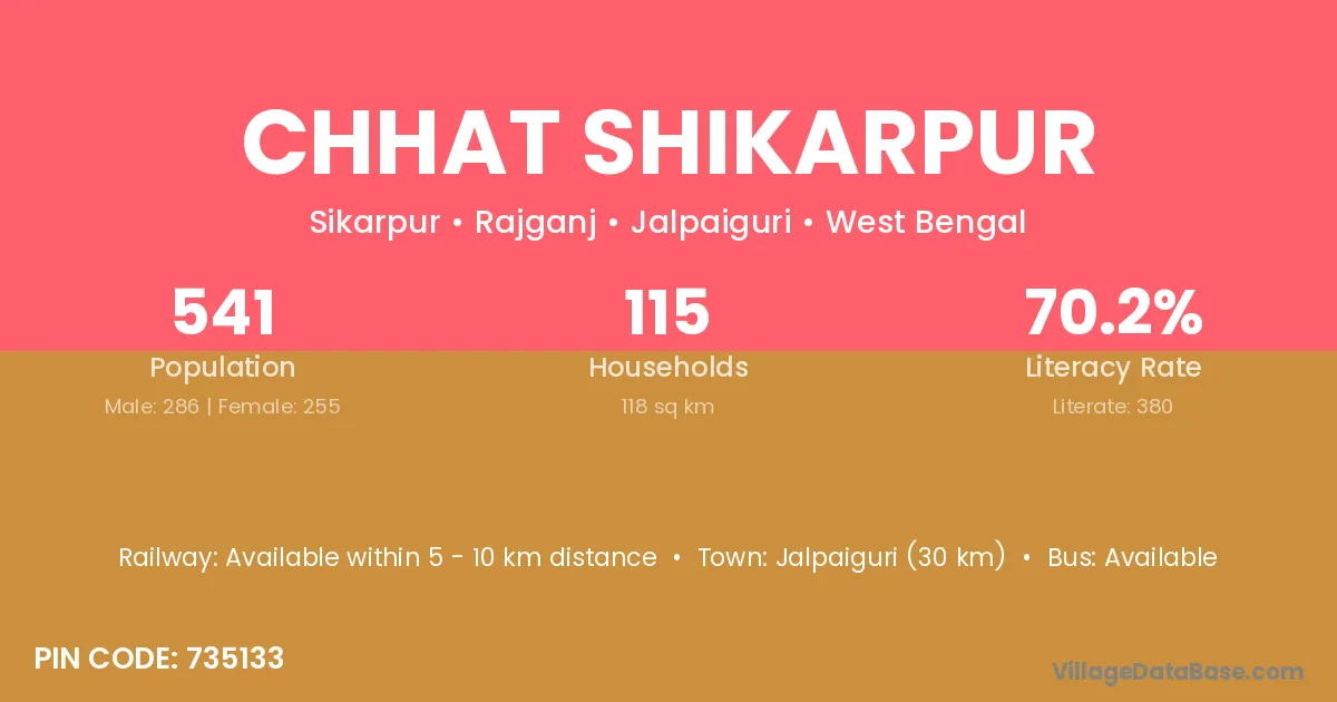 Jalpaiguri (30 km) is the nearest town to Chhat Shikarpur village for major economic activities and is located approximately 30 km away.
