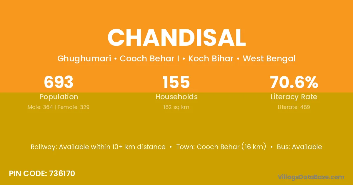 Cooch Behar (16 km) is the nearest town to Chandisal village for major economic activities and is located approximately 16 km away.