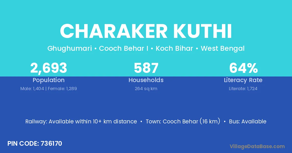 Cooch Behar (16 km) is the nearest town to Charaker Kuthi village for major economic activities and is located approximately 16 km away.