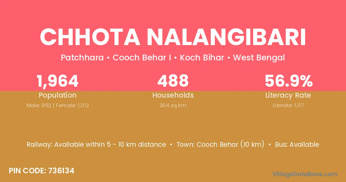 Cooch Behar (10 km) is the nearest town to Chhota Nalangibari village for major economic activities and is located approximately 10 km away.