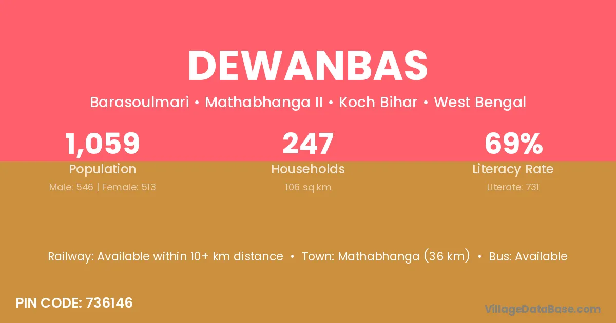 Mathabhanga (16 km) is the nearest town to Dewanbas village for major economic activities and is located approximately 16 km away.