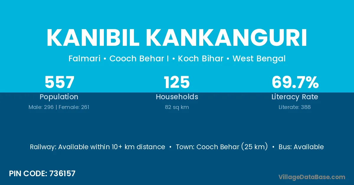 Cooch Behar (25 km) is the nearest town to Kanibil Kankanguri village for major economic activities and is located approximately 25 km away.