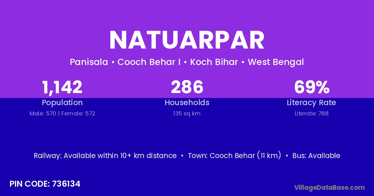 Cooch Behar (11 km) is the nearest town to Natuarpar village for major economic activities and is located approximately 11 km away.