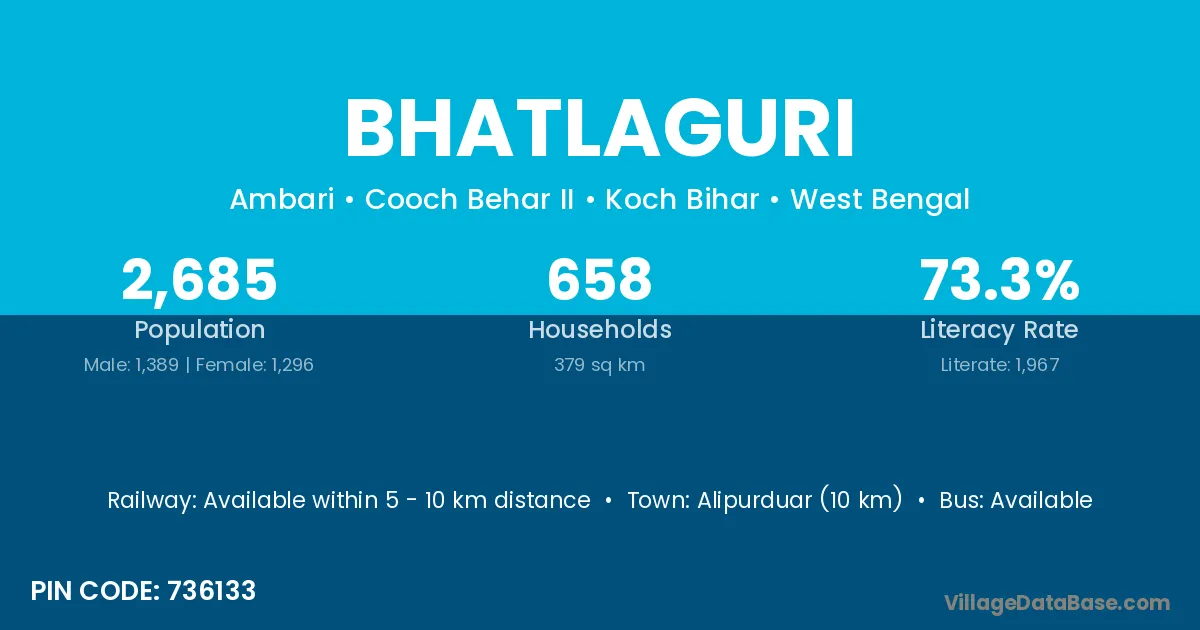 According to Census 2011 information, the village code of Bhatlaguri village is 736133.