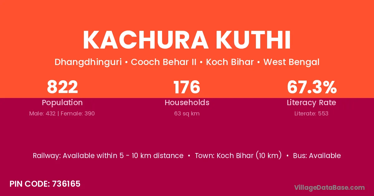 Koch Bihar (10 km) is the nearest town to Kachura Kuthi village for major economic activities and is located approximately 10 km away.