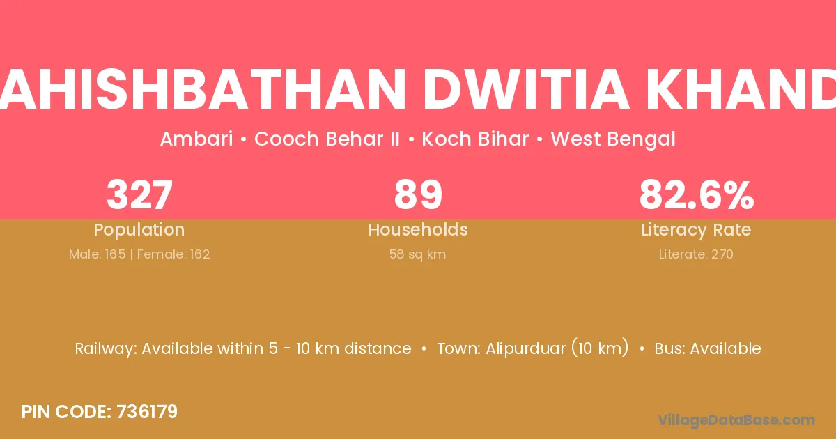 According to Census 2011 information, the village code of Mahishbathan Dwitia Khanda village is 736179.