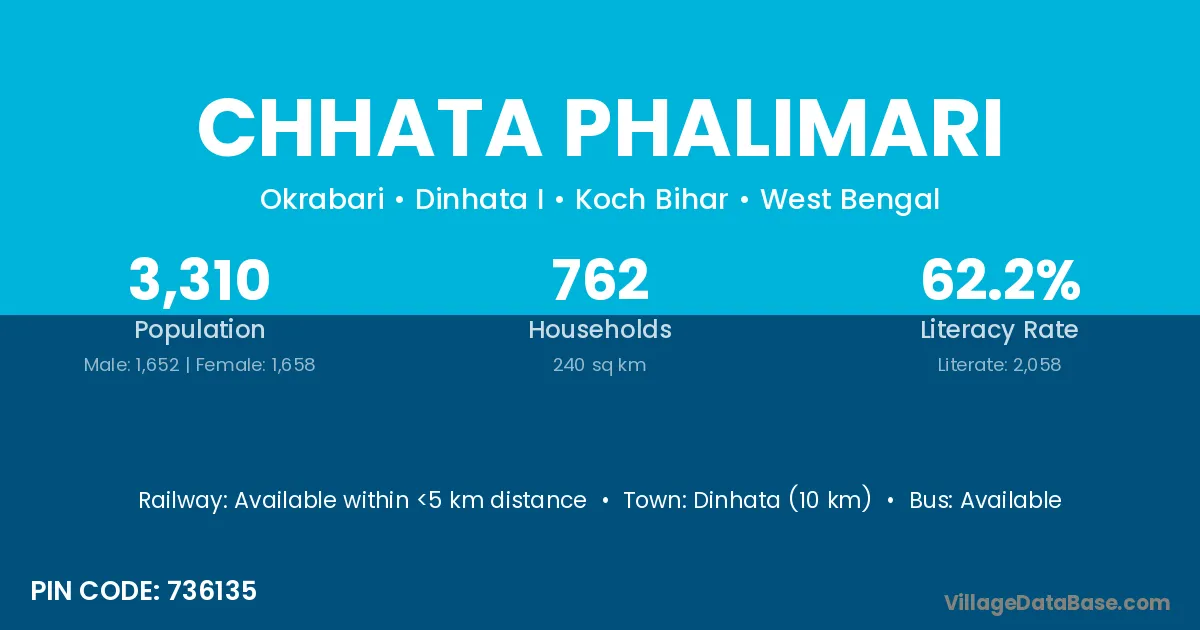 Dinhata (10 km) is the nearest town to Chhata Phalimari village for major economic activities and is located approximately 10 km away.
