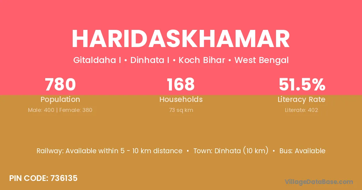 Dinhata (10 km) is the nearest town to Haridaskhamar village for major economic activities and is located approximately 10 km away.
