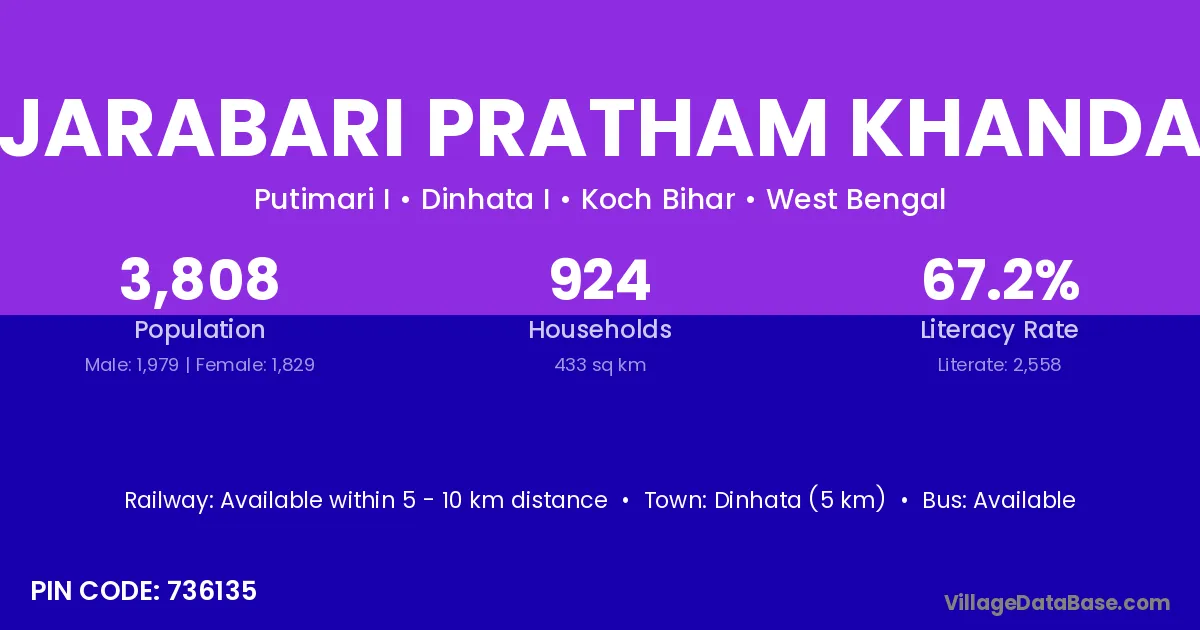 Dinhata (5 km) is the nearest town to Jarabari Pratham Khanda village for major economic activities and is located approximately 5 km away.