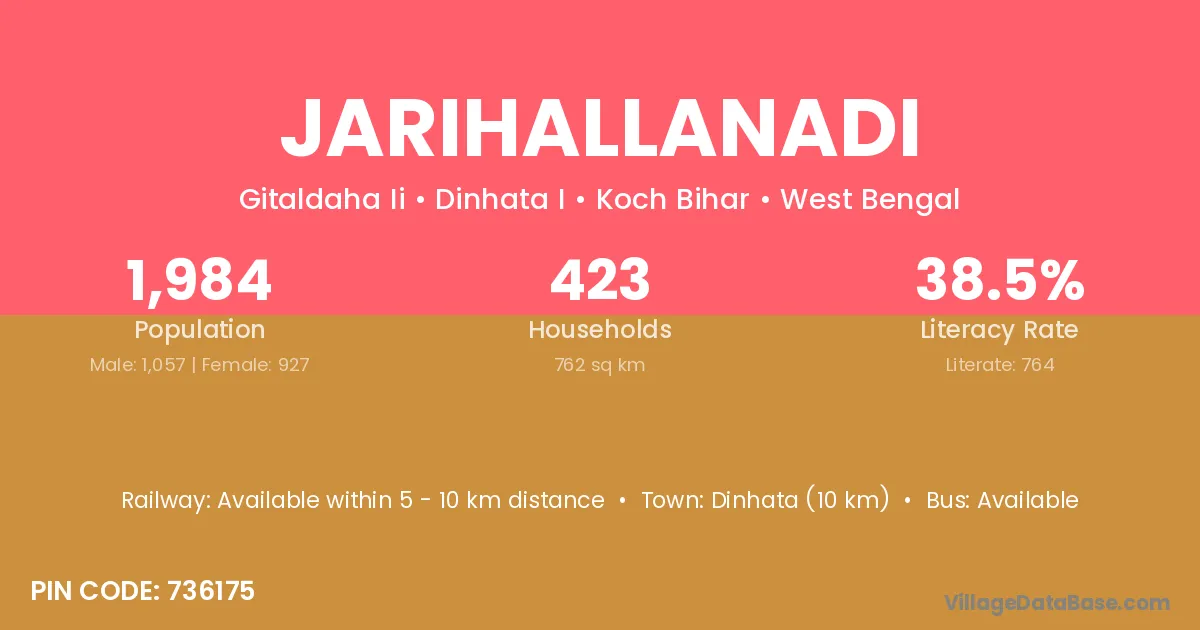 Dinhata (10 km) is the nearest town to Jarihallanadi village for major economic activities and is located approximately 10 km away.