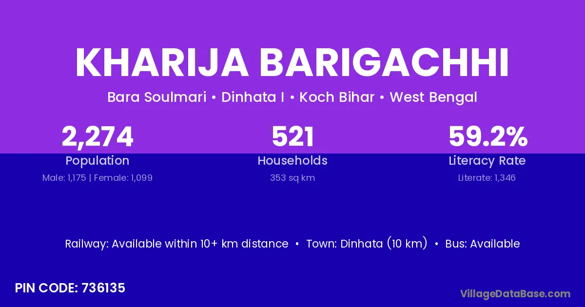 Dinhata (10 km) is the nearest town to Kharija Barigachhi village for major economic activities and is located approximately 10 km away.