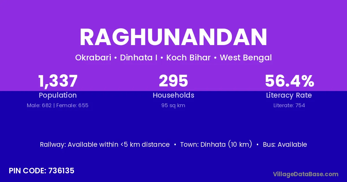 Dinhata (10 km) is the nearest town to Raghunandan village for major economic activities and is located approximately 10 km away.