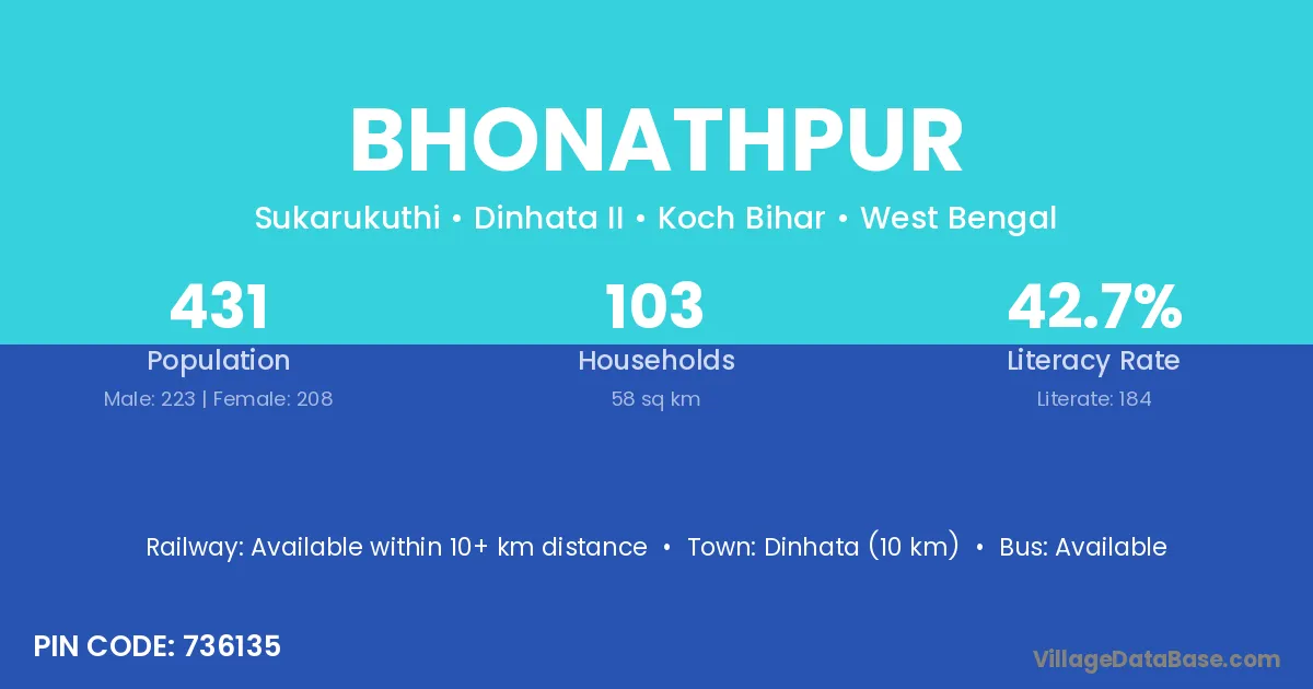 Dinhata (10 km) is the nearest town to Bhonathpur village for major economic activities and is located approximately 10 km away.