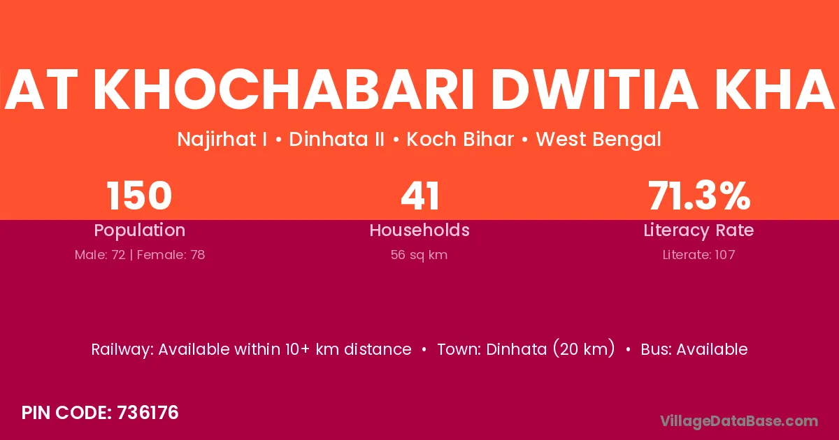 Dinhata (20 km) is the nearest town to Chhat Khochabari Dwitia Khanda village for major economic activities and is located approximately 20 km away.