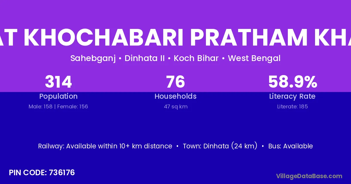 Dinhata (24 km) is the nearest town to Chhat Khochabari Pratham Khanda village for major economic activities and is located approximately 24 km away.