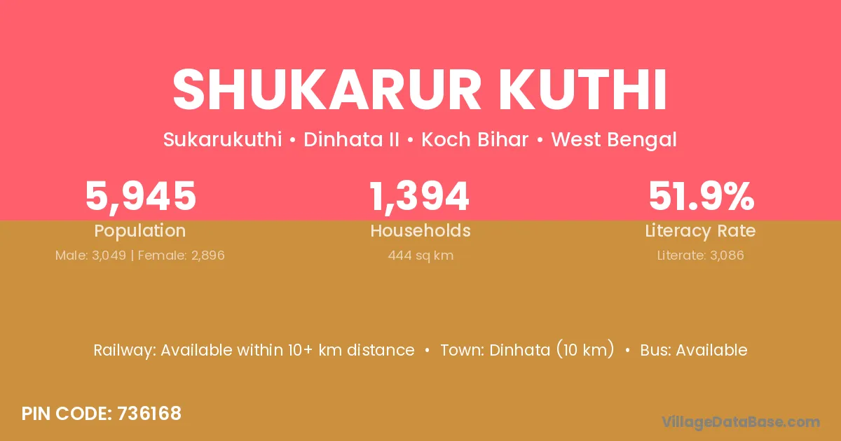Dinhata (10 km) is the nearest town to Shukarur Kuthi village for major economic activities and is located approximately 10 km away.