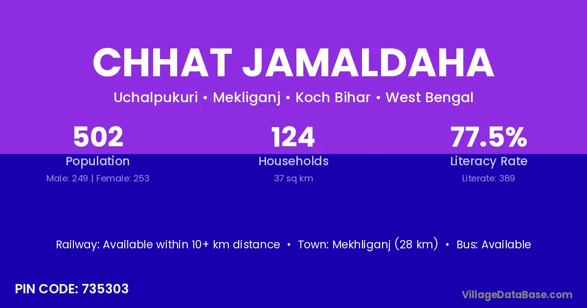 Haldibari (7 km) is the nearest town to Chhat Jamaldaha village for major economic activities and is located approximately 7 km away.