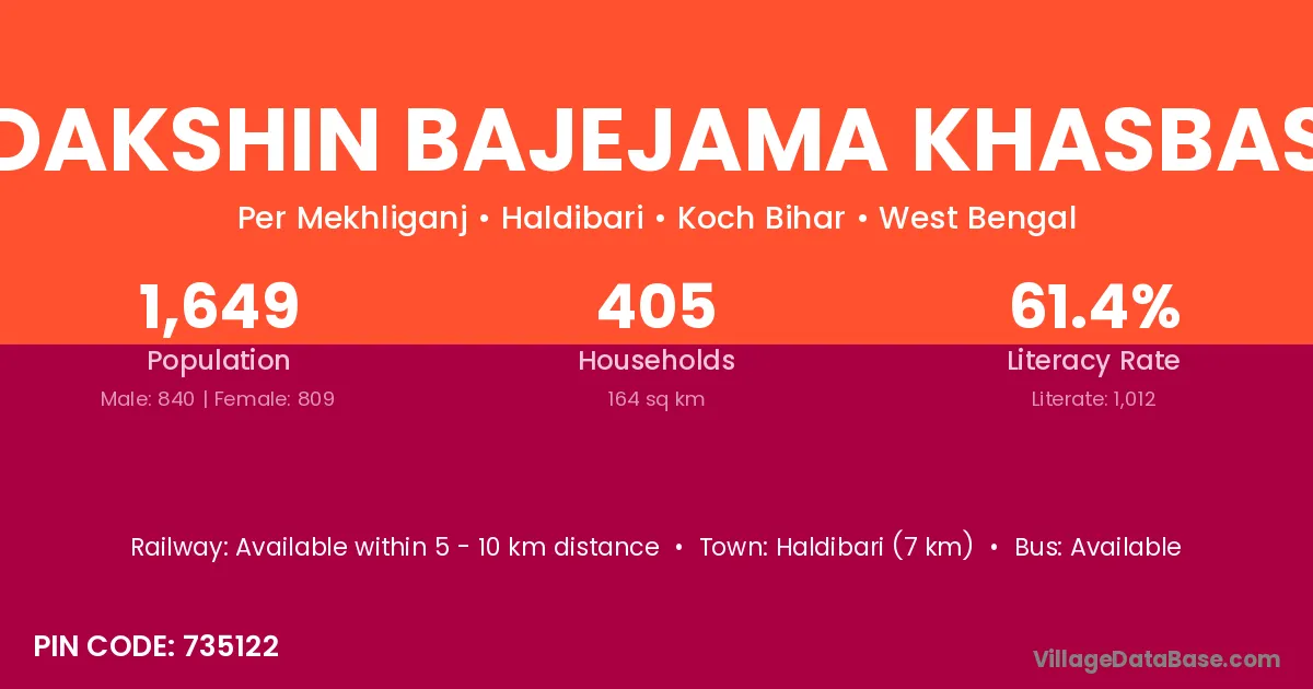 Haldibari (7 km) is the nearest town to Dakshin Bajejama Khasbas village for major economic activities and is located approximately 7 km away.