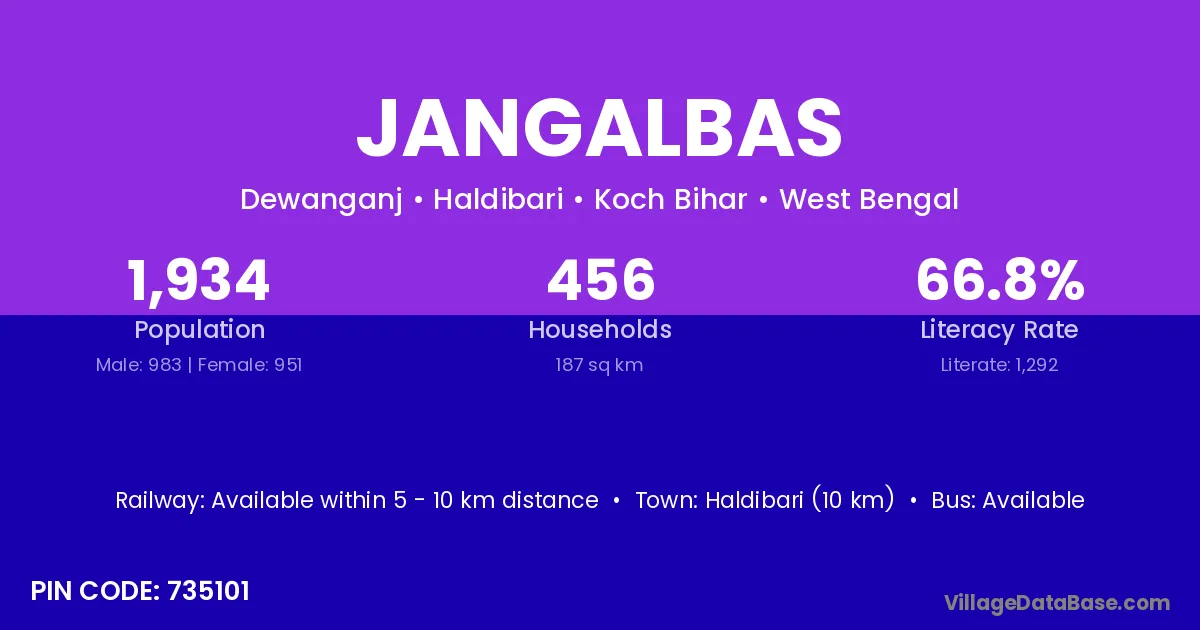 Haldibari (10 km) is the nearest town to Jangalbas village for major economic activities and is located approximately 10 km away.