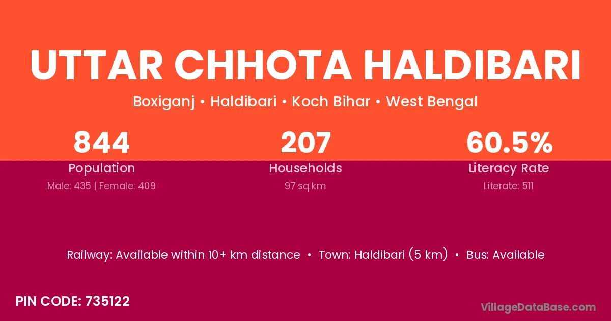 According to Census 2011 information, the village code of Uttar Chhota Haldibari village is 735122.