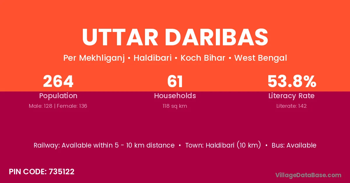 According to Census 2011 information, the village code of Uttar Daribas village is 735122.