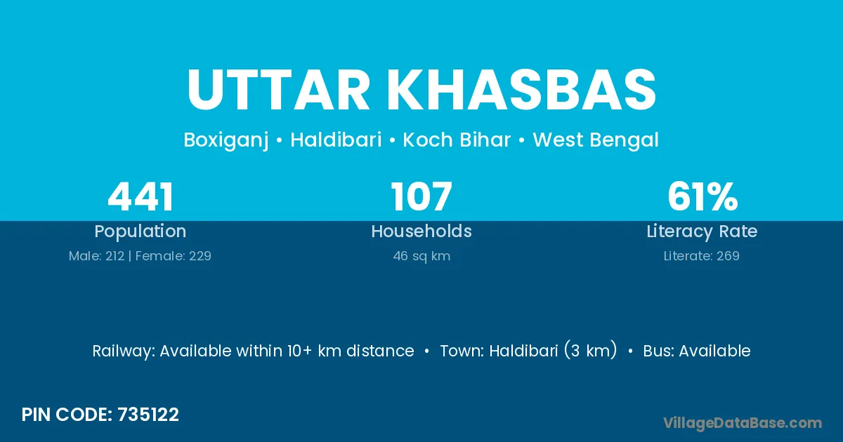 Haldibari (3 km) is the nearest town to Uttar Khasbas village for major economic activities and is located approximately 3 km away.