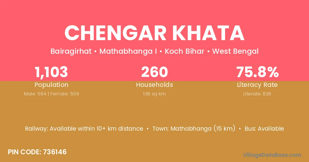 Mathabhanga (15 km) is the nearest town to Chengar Khata village for major economic activities and is located approximately 15 km away.