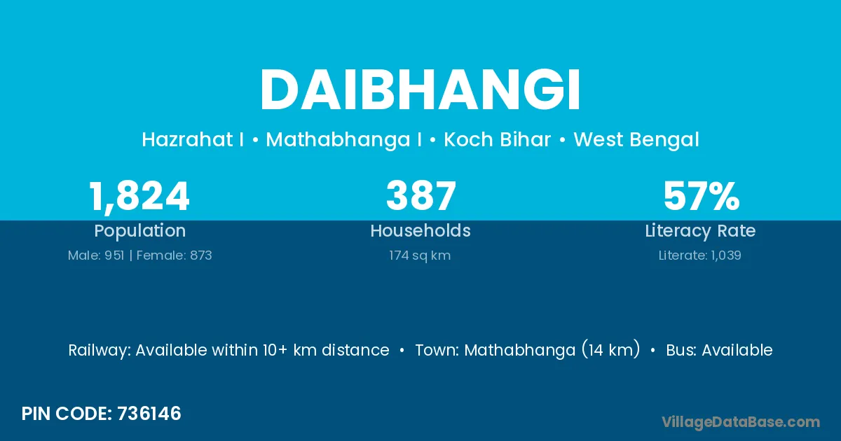 Mathabhanga (14 km) is the nearest town to Daibhangi village for major economic activities and is located approximately 14 km away.