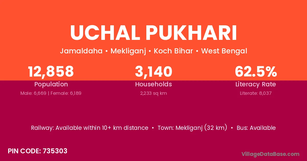 Mathabhanga (25 km) is the nearest town to Uchal Pukhari village for major economic activities and is located approximately 25 km away.