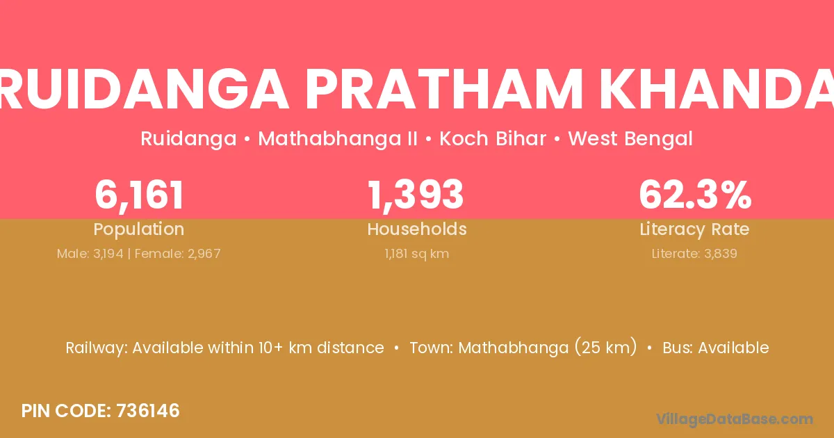Mathabhanga (25 km) is the nearest town to Ruidanga Pratham Khanda village for major economic activities and is located approximately 25 km away.
