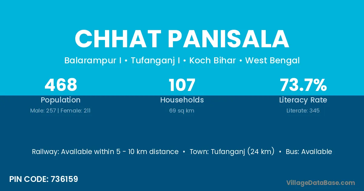 Chhat Panisala village has a total population of 559 people, of which 271 are males and 288 are females.