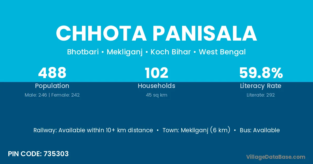 Mekliganj (6 km) is the nearest town to Chhota Panisala village for major economic activities and is located approximately 6 km away.