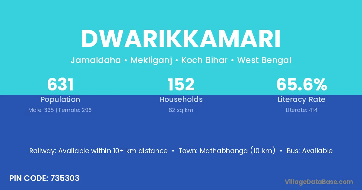 Mathabhanga (10 km) is the nearest town to Dwarikkamari village for major economic activities and is located approximately 10 km away.