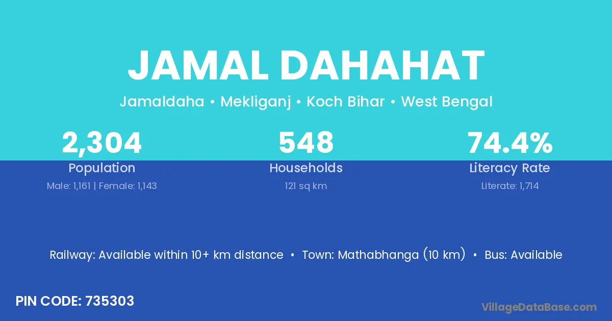 Mathabhanga (10 km) is the nearest town to Jamal Dahahat village for major economic activities and is located approximately 10 km away.